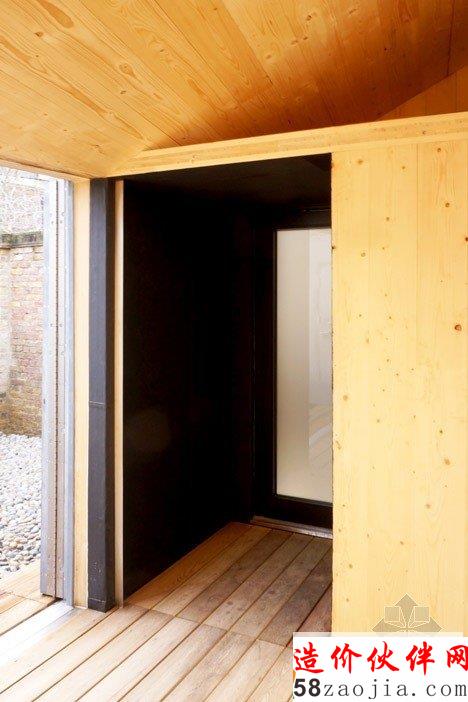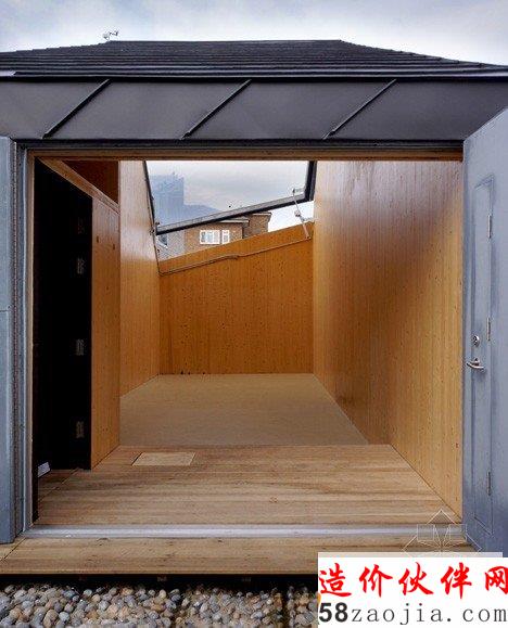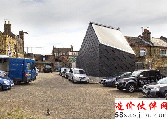 客户要求以间接光线为主,自然通风,避免阴影和眩光。因此建筑师在这个楔形建筑内设计一个巨大的可开启的天窗 ,这扇窗为4x5米,是英国最大的窗户尺寸,引入北边天空的光线。建筑南边是一个小院子,以尽量减少街道对其的干扰,同时确保阳光可以透过半透明卷帘撒入工作室后方的服务区。