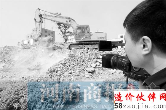 民乐里社区拆迁工地,工作人员正在取证