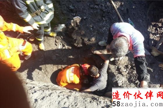 8时57分,湖南邵阳市消防中队抢险救援车到达现场。经侦查发现,现场有两名工人被塌陷的沙石掩埋,其中一人半身被沙石所埋,伤势较重,一人双脚深陷沙石之中。消防中队指挥员随即命令组成救援小组,一组救援双脚深陷沙石之中的工人,徒手刨挖周边的沙石,最终将人员救出;另一组精干力量救援伤势较重的工人,利用板刀,钢筋速断器等工具进行救援。同时,疏散现场的围观人员,为救援提高了有利的通道。