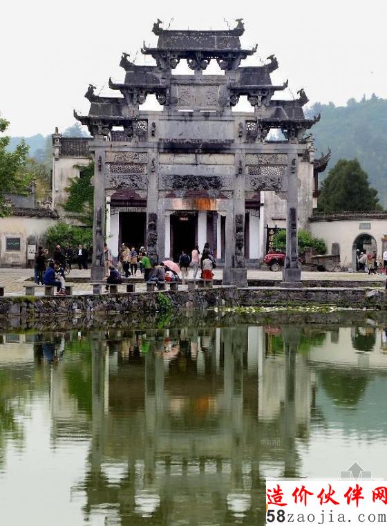 安徽省黟县西递古村落的一座明代汉白玉石牌楼