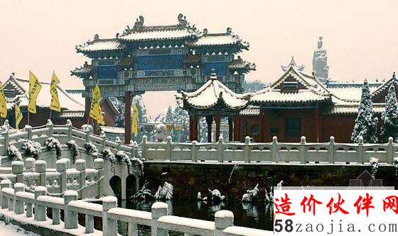 河南省开封市翰园碑林景区门前的石牌楼雪景
