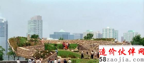 占地半英亩的纪念公园东低西高,夹在时尚摩登的豪华公寓与办公楼之间。从东向西看过去,是一片由石头垒成护墙的坡形草地,草地上散落着爱尔兰田野里特有的60种石楠,熊果,洋地黄,荆豆等野花灌丛。