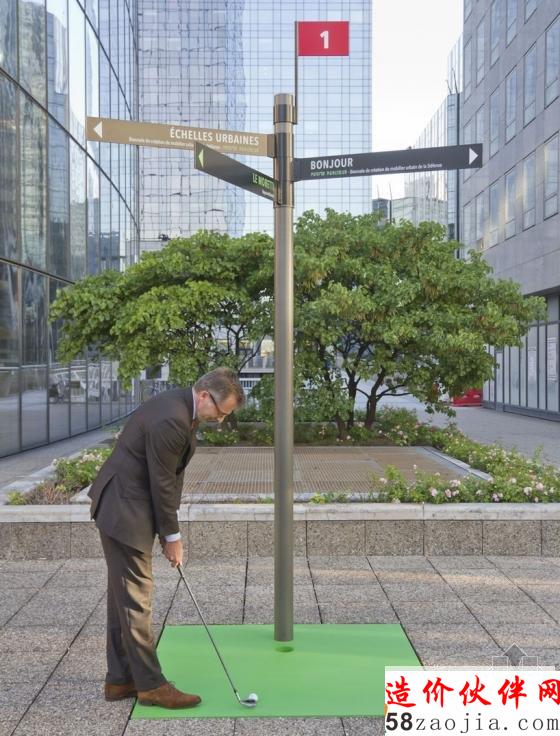 在路标下面安装了很多不同的运动项目,使人们的每段旅程都变为健康的征程。这些装置意在转变社区的用途以及概念。从最常见的装置(篮球和足球)到让人感到惊艳的设施(拳击和高尔夫),活动项目的选择有着非常重大的意义。它们利用的都是人们意想不到的空间,让人们重新思考他们与生活环境的关系。这些设施不仅仅可以完全发挥锻炼身体的功能,同时还可以装点整个城市,强调了“健康的身体孕育明朗的心灵”,这个设计的名称来自于拉丁语。将心灵寓于健全的身体之中(mens sana in corpore sano)这套锻炼身体的家具装饰唤起了人们的好奇心,同时也缩短了人们的身体与城市生活的距离。
