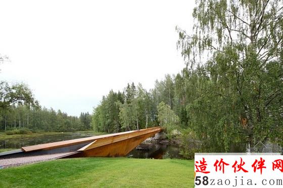 曾经的Gosta博物馆扩建工程以及Melasjarvi湖湖岸公园景观重建工程却成为了一个将此公园与其东南边的小岛Taavetinsaari岛连接起来的良机。此前这里曾经修建过一座连接两处的木桥,但是木桥在几十年前就已经塌陷了。因此有必要将小岛融合为一个户外展示区域,这样才能使这个当代艺术博物馆的结构变得完整。