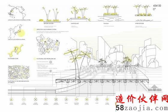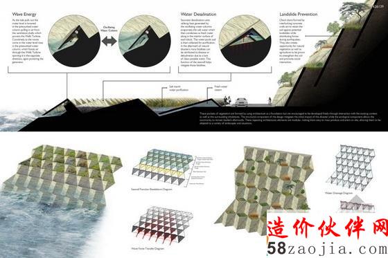 温哥华人文建筑公布了“NEXT BIG ONE”的获奖者。此竞赛向全世界公开征求能克服城市高级地震和海啸的设计方案。项目团队需要提出“能缓解自然灾害同时还能保持社区持久性”的设计方案。