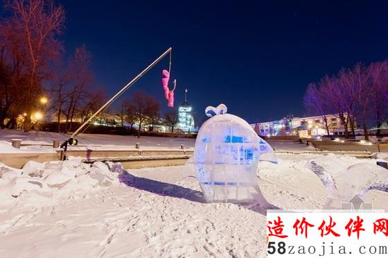 这个由挪威duo tina soli & luca roncoroni公司设计的“巨大的冰鱼”是一个模拟从冰河中跃起的巨鱼的雕塑。