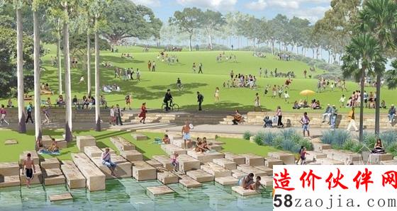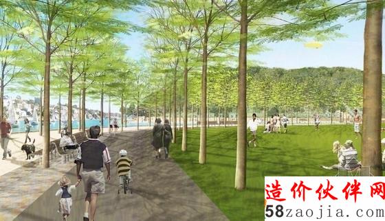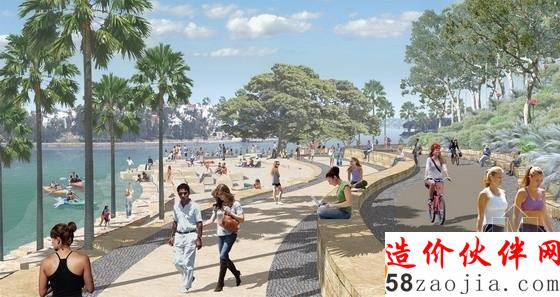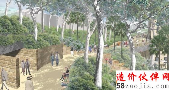 新的岬角将通过建造一个地下文化中心和公共车库与其历史上的造型区分开来。一条围绕海岸线的道路将为公众提供主要的通行点以鼓励他们进行锻炼和娱乐活动。这条路上有人行道和自行车道,两者中间是沿着这条建于1836年的海岸线的砂石墙。岬角上种植的植物不仅是澳大利亚特殊的种类,而且是悉尼的特殊种类,这其中包括一种再生灌木以及大型的标本树。最终形成的将是一个结合了文化参照物与自然过程的公园。