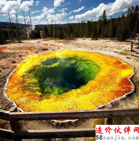 据英国媒体报道,美国黄石国家公园的牵牛花池由原本的水晶蓝色已经彻底变成了黄绿色。杂物堵塞地下管道,导致温泉水温上升。 超过300万的游客参观公园,留下的垃圾和硬币严重损坏了公园原有的风貌,因此被称作“正在逝去的光耀”。黄石公园的温泉里,这些看起来似乎像彩虹一样绚 烂的色彩,实则是多年来游客无意识的人为破坏的结果。