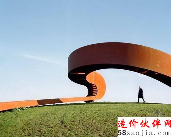 这个迂回的柯尔顿钢阶梯是由NEXT architects事务所设计的,位于荷兰Carnisselande鹿特丹郊区的一座山上。依据莫比乌斯带杯——一个单一表面的容积,没有顶部和底部——建造出一个没有尽头的道路,而且它的外围不能绕行,并反映出了Carnisselande郊区居民和鹿特丹城市居民之间模糊的文化联系。