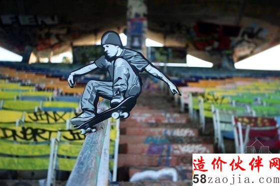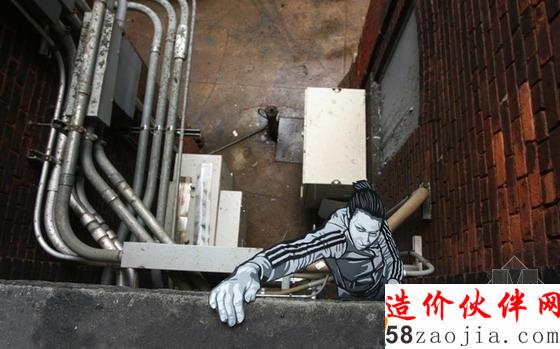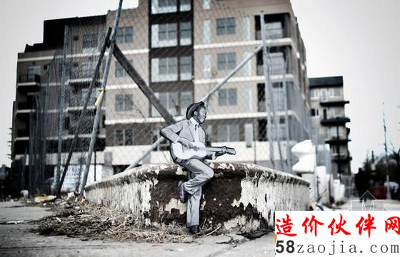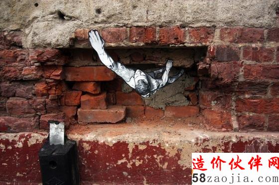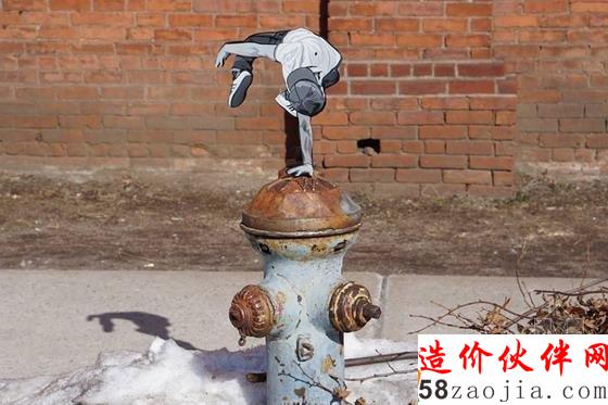 新泽西艺术家Joe Iurato从其个人生活体验出发在其城市改造系列项目中将旧时的印刷程序与当代街道艺术形式结合了起来。这些他胡乱雕刻的微型形象从吉他演奏者到breaking(街舞的一种)舞者各不相同,每个形象都被微妙地添加到了城市景观中并与景观产生了互动。