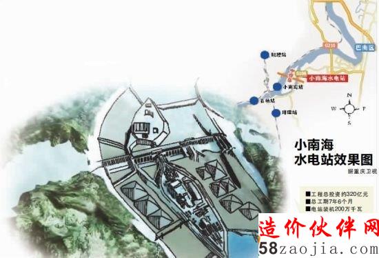 小南海水电站由重庆市政府和中国长江三峡集团公司(下称“三峡集团”)共建,工程总投资约320亿元,总工期7年6个月,装机200万千瓦,年均发电量102亿千瓦时,是目前重庆市“投资最大、装机规模最大、发电量最大”的水电项目。