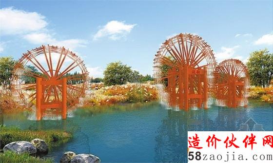 耕园是整个栈道上较大的观景平台,木屋式的观景台为两层,视野开阔。在附近,有3个直径约6米、8米、10米的水车,它们象征着黄河流域的农耕文明。