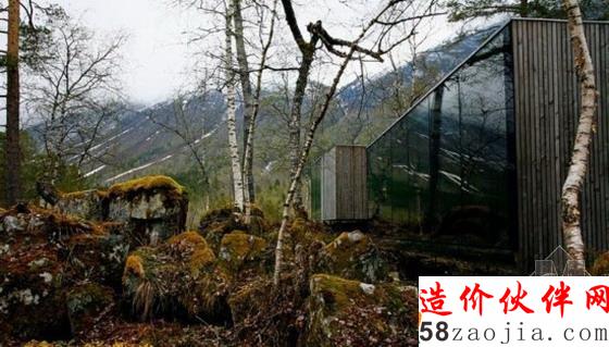 一排钢棍嵌入岩石就形成了这个奇特旅馆。它坐落在挪威的野外,建筑师Jensen & Skodvin Architects又用玻璃作为整体的墙面,使这个旅馆更有风格。