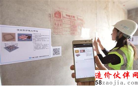 拿起手机扫一扫二维码,一个详细工艺说明文件呈现在面前,包括示意图、尺寸标准、施工工序等。文件可保存至手机,方便随时随地查阅。样板间引入二维码可在工人中普及施工知识,有利于进一步保障房屋质量。