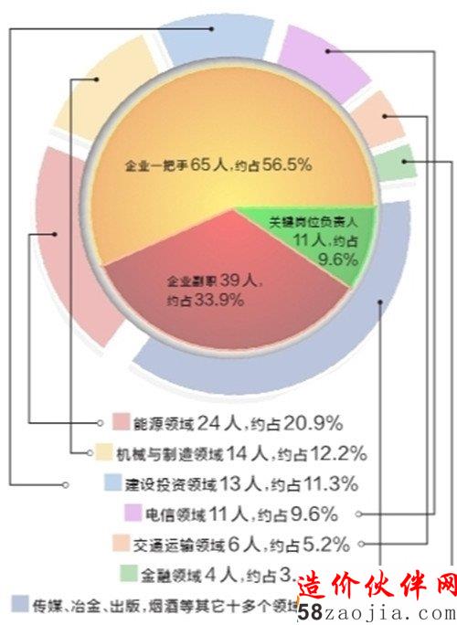 董事长、总经理等一把手毫无意外地成为国企腐败分子中的“大多数”。115名“落马”国企高管中,董事长、总经理等企业一把手共有65人,如广东电网公司原总经理吴周春、上海市电力公司原总经理冯军等,占比约56.5%。