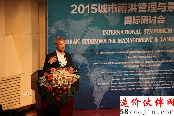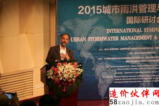 本次研讨会紧紧围绕城市雨洪管理课题,基于“景观水文”这一创新理念,力图推动水文、水利、水环境等科学与工程应用领域的研究与分析,与风景园林、城乡规划、建筑设计领域的研究与实践展开充分的交流与对话。基于此研讨会邀请了国内外从事雨洪管理与景观水文领域研究与实践的多学科专家学者到会作专题演讲。到会的国际嘉宾包括:美国弗吉尼亚大学土木工程学院环境工程系余啸雷教授,美国温克事务所(Wenk Associate)主席、科罗拉多大学兼职教授、著名景观设计师Bill Wenk先生,挪威科技大学聂林妹教授,国际知名设计机构德国戴水道公司(Atelier Dreiseitl)总裁与首席设计师Dieter Grau先生,美国知名环境企业美国何瑞然咨询公司(Herrera)首席科学家John Lenth先生、摩尔福斯特环境工程咨询有限公司(Maul Foster Alongi)总工程师 Ted Wall先生。