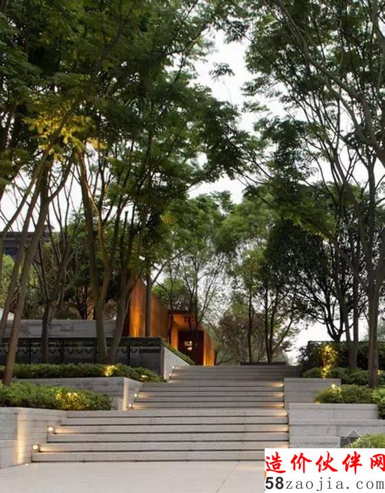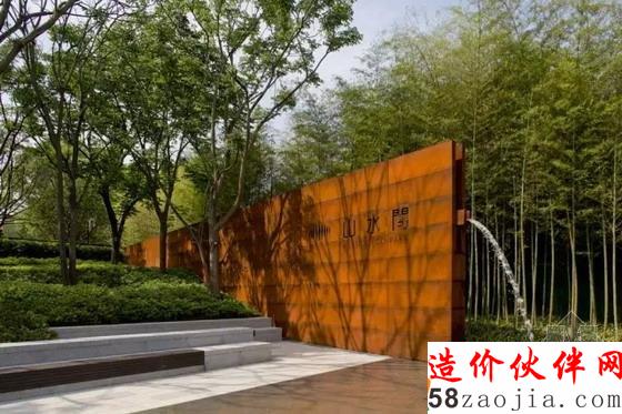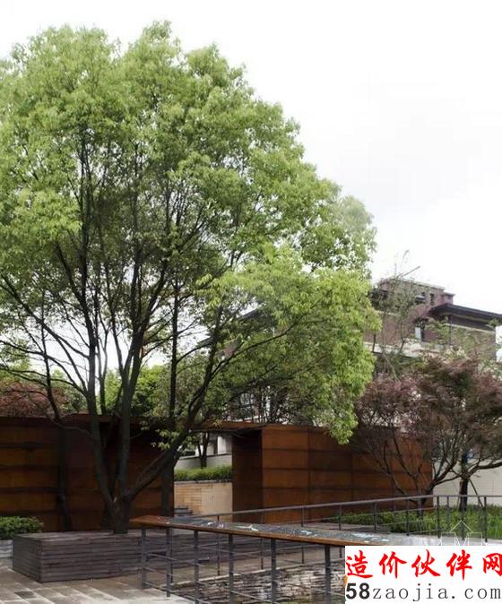 样板房入口锈板墙和原有大树