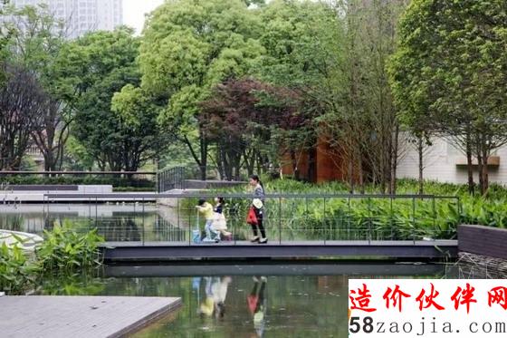 “山水间”公园是一个典型的中国高密度社区里的公共绿地,它的四周被超高层住宅包围,将会为新搬迁来的几千名住户提供室外活动的空间。