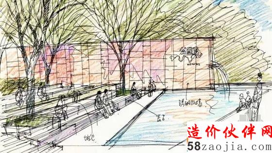 概念方案手绘草稿-入口水景墙