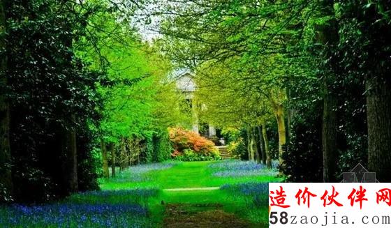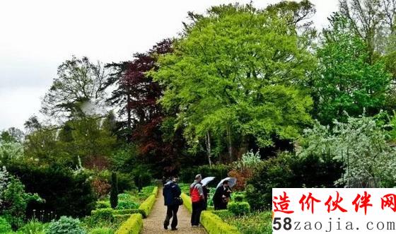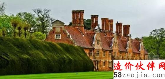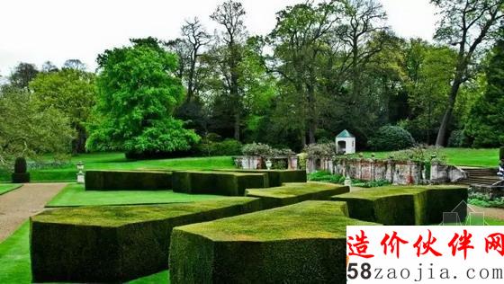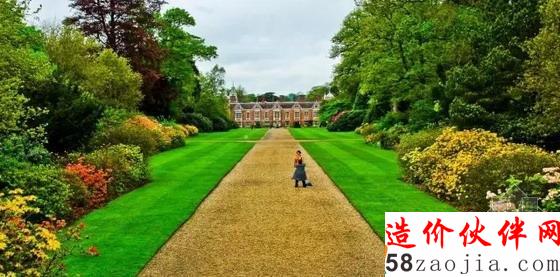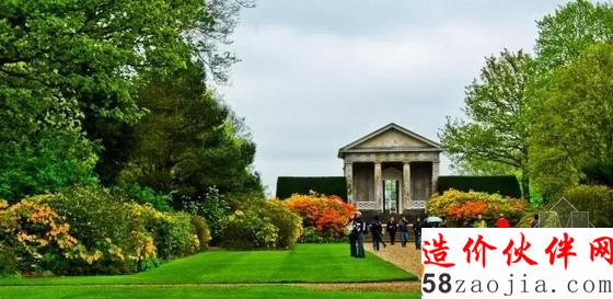 大片的草地,环绕的大树,两侧紫杉拼成的整形高大树篱,充分展现了布利克林庄园的优雅与端庄18世纪,曾担任驻俄罗斯大使的约翰·霍巴特第二伯爵,受命扩大园内湖泊和改造花园。19世纪初,雷普顿进行了装饰改造。1870年,聘请怀亚特爵士和尼斯菲尔德设计建造东面的花园,他们修建了台地和踏步台阶。20世纪30年代,诺拉·林赛,被要求更新花坛, 她把园地分成四个正方形,每棵红豆杉锥形树下种满多年生花卉,顺着两边的草坪, 沿着中间的轴线,一直延伸到远处的神庙。