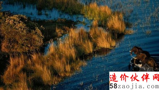 在非洲博兹瓦纳奥卡万戈三角洲所拍摄的大象航空摄影图,摄影师认为摄影是记录动物生活的最好方法。
