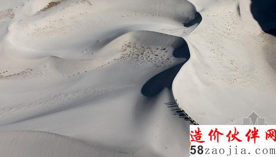 巴基斯坦的巴尔蒂斯坦中,穿过沙漠地带的商队看起来就像蚂蚁一样小。