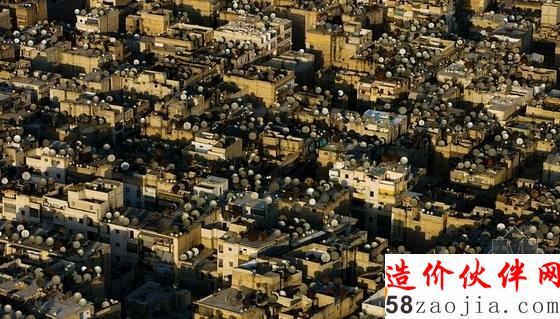 叙利亚阿勒颇每家每户屋顶上的天线锅。这图展示了我们在地面上绝对看不到的壮观场面。