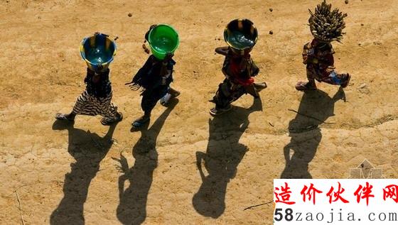 西非马里多贡地区:在非洲的旱季中,女人经常每天徒步10KM去取水。在撒哈拉以南非洲地区,一年里取水耗时400亿小时。