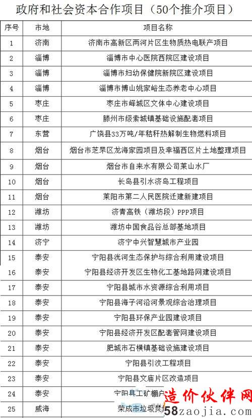 山东省财政厅发布山东省政府和社会资本合作50个PPP项目名单,含固废处理、垃圾发电、环保产业园建设等,内容如下: