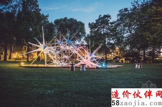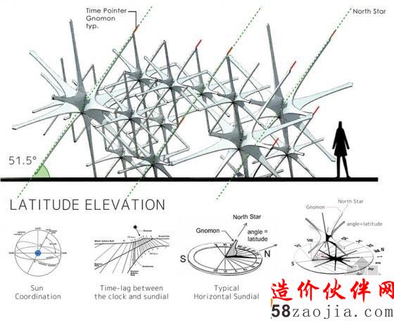 一年一度的场馆设计竞赛旨在通过不同的形式、功能、材料来推动建筑方面的实验和探索。这一次,来自日本东京的Nonscale获得的赛事的胜利,从全球的数百份设计中脱颖而出。他们的设计被称作“坠落的北极星”,其基础是几座蚀刻的日晷,它们会依据太阳在天空中移动,告诉人们一天中不同的时间。晚上,安装的照明彩灯会牢牢地抓住路人的眼镜。
