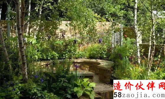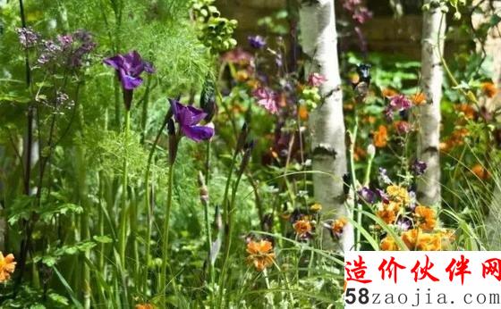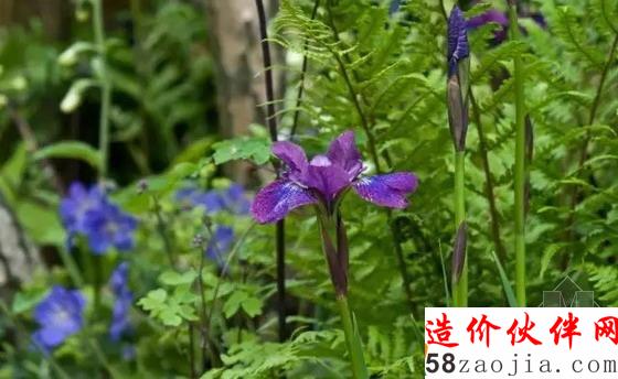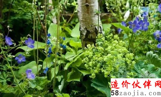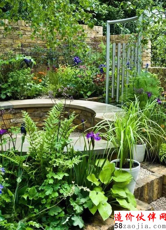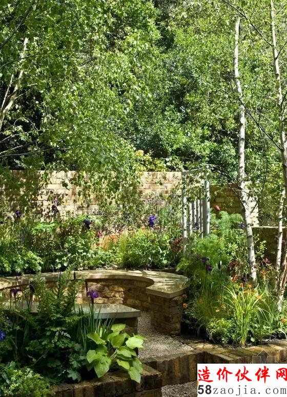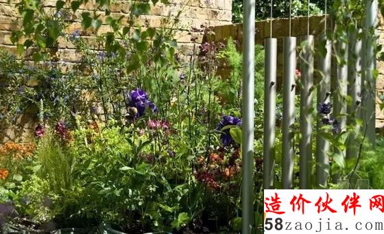 拴在一起的风铃和水琴构成了声音与音乐元素,供孩子及其家人就座的同时,也为其带来了欢乐。花园的熟悉感使人倍觉舒适安逸,与其形成鲜明对比的是冷色系的蓝绿林下植栽,或疏松零散,或缀满各色花朵,橙的、黄的、绿的,令人眼花缭乱:这种五彩斑斓的植栽布局灵感来源于德麦亚之家的孩子们对充满希望而又令人愉悦的颜色的喜好。