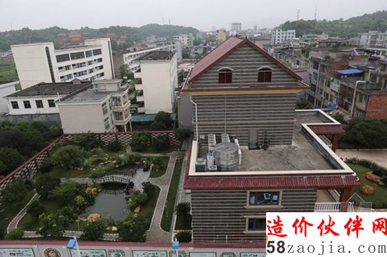 “王府”占地将近1亩,中间是一个圆形的花坛,花坛中间有三块太湖石、两株松树。左右两侧是花圃,种着一些树木。此外,院中还有一只大黑狗在转悠。王林被捕之后,“王府”俨然成了芦溪县的“著名旅游景点”,在“王府”右手边的饭店,有不少慕名而来的人们登上饭店的顶楼,一窥“王府”全貌。记者在该饭店顶楼和附近的地税局楼顶得以看到了“王府”内部。