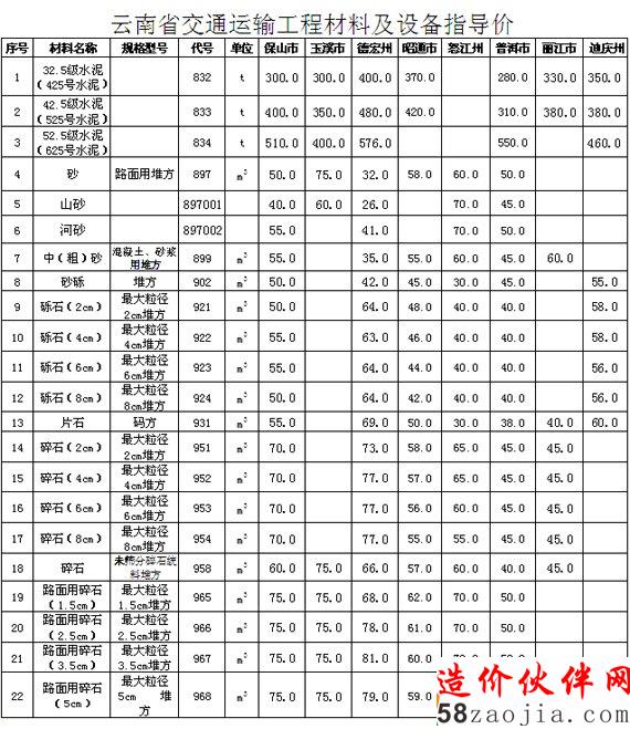 [云南]2014年第5期交通运输工程材料及设备指导价勘误通知