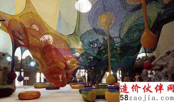我们目前看到的游乐场都是利用钢铁和木头建成的,但这个游乐场有许多种选择。它的结构是由手工编织的网纱构成,是一个在山坡上仿造蚂蚁巢穴建成的儿童乐园,包括了蚁冢之塔、蚁巢隧道、彩虹巢巨蛋等部分,让孩子们乐此不疲。