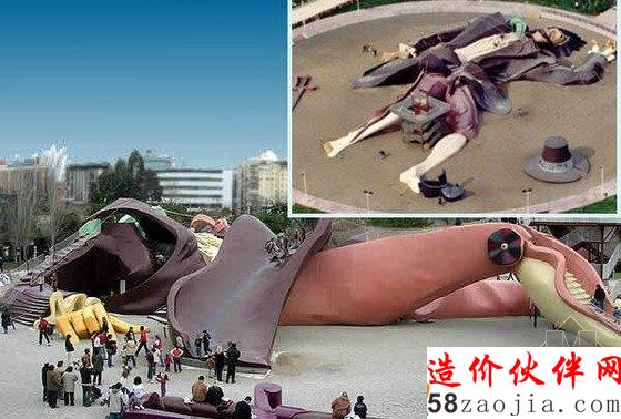 西班牙瓦伦西亚格列佛公园,是根据英国作家乔纳森斯威夫特(JonathanSwift)的《格列佛游记》(Gulliver'stravels)中格列佛在航海船沉后飘到了小人国,在他疲惫沉睡时被小人国的城民用绳子将他捆绑在原地的场景,制作了巨大的格列佛造像。孩子们和前来游玩的人们恰似“小人国”里的城民,攀上各种“梯子”,探索这个庞然大物。占地一万五千平米的格列佛色彩绚丽、造型生动,充满神奇童话色彩。他整个趴在沙地上,手脚、头发、衣服褶绉都暗藏了各种可以攀爬的阶梯、滑梯和绳梯,孩子们和陪同的大人们能一起攀上滑下,尽情玩乐。