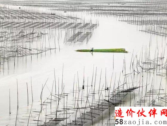 这里看似普通却深得中国摄影家的青睐。狭长斑驳的滩涂上,三三两两的散布着竹房,竹篙,浮筒和渔具等器物。这些人工制品与此地美丽的自然景观交相辉映。