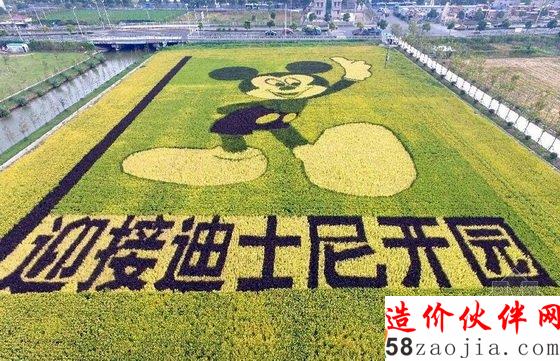 10月25日,游客在观景台上观赏“米老鼠”稻田画。喜欢迪士尼的游客纷纷在照相,此次设计为上海增添了一份趣味性。
