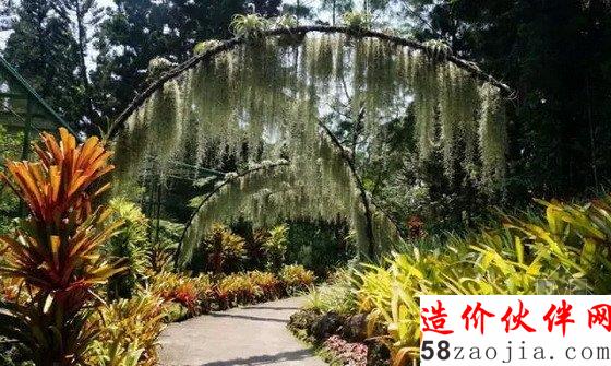 3.2国家植物园凤梨园拱门沿路种植各色积水凤梨,拱门上固定有各种空气凤梨,垂挂而下的为松萝凤梨。