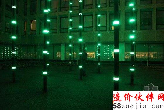 当进入到阿姆斯特丹Hotelschool的庭院时,你发现自己在丹罗斯格德最新的项目Boo中徘徊。这些6米高的灯柱和声柱是罗斯格德最新、梦幻般的灯光设计。Boo项目受欧洲和亚洲融合的启发建造的。亚洲的禅意花园主要是互动性、巨大的LED灯。当穿过这些柱子时,加强版的蟋蟀声环绕着游客,而且绿灯会与人们产生互动。