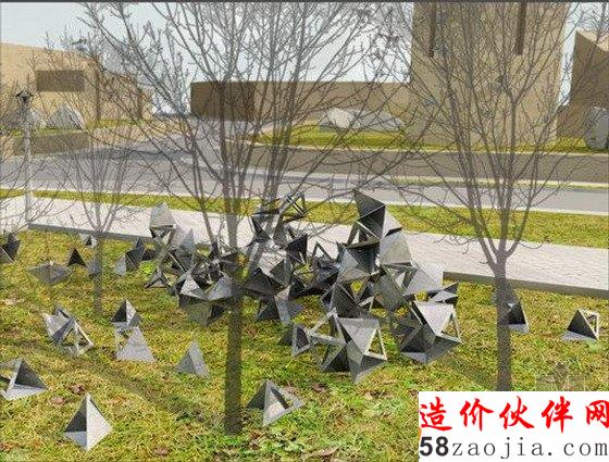 另一个通过使用景观设计增强品牌形象的创意性方法是马耳他JEMS提议的Bulebel纪念设计,由钢铁材料和棱镜结构建造。