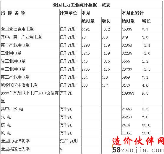 1-10月,全国全社会用电量累计45835亿千瓦时,同比增长0.7%。分产业看,第一产业用电量879亿千瓦时,同比增长3.0%;第二产业用电量32858亿千瓦时,下降1.1%;第三产业用电量5959亿千瓦时,增长7.1%;城乡居民生活用电量6140亿千瓦时,增长4.6%。