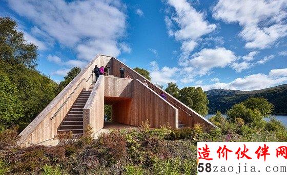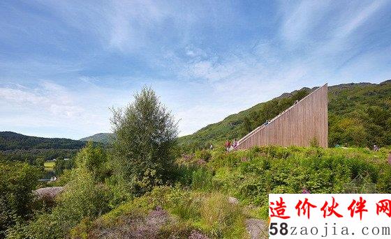 这个观景台实际上属于由苏格兰政府推动的“苏格兰风景路线计划”,计划希望能够让本土设计师多为苏格兰地区建一些设计精巧独特的观景台,改善旅行者们在旅游时的体验,也促进本地经济发展。设计罗蒙湖这个观景台是 BTEArchitecture 也是个年轻的工作室,在他们的官网上你只能看到这一个项目。工作室的联合创始人 DanielBr 倒是很有信心地表示,这个观景台一开始就设计为一个地标。“它肯定要为旅行者所用。它屹立在这一带最显眼的位置,在老远就能看到它的规模与形状。人们可都看着它呢。”他说道。