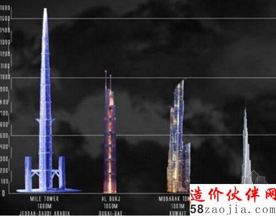 阿拉伯王室预计兴建的《一英里高塔(Mile-HighTower,维基中文的翻译)》,又名《帝国塔(KingdomTower)》,可真是名副其实有帝国的霸气跟疯狂,这座塔高1600米,几乎是目前最高的杜拜塔(818米)的整整一倍!