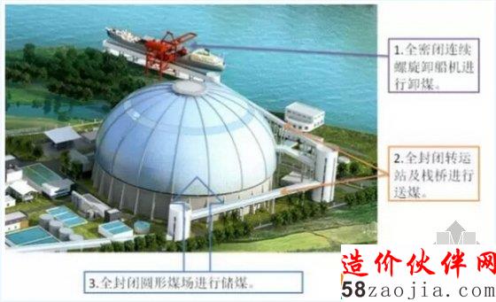 对于燃煤电厂,原煤的卸载、输送及贮存过程为扬尘的主要产生源,为防止扬尘的产生及扩散,中山火电项目采用全密闭的连续螺旋卸船机进行卸煤,连续螺旋卸船机由于生产率及利用系数高,易于实现物料的自动化输送,同时由于是封闭式输送,对环境的污染小,所以螺旋卸船机的广泛应用对节能和环境保护都有重要意义,可以有效做到无煤粒掉落与扬尘,环保高效。