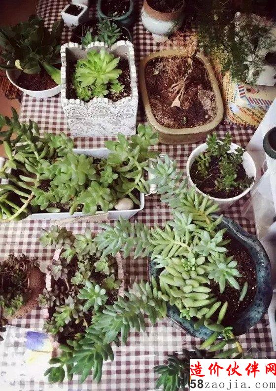 ▲格子布下面是房主留在院子里的废品,但是又不能扔,就用箱子装起来用布盖着,上面放的是小米种的肉肉们,都是网淘。