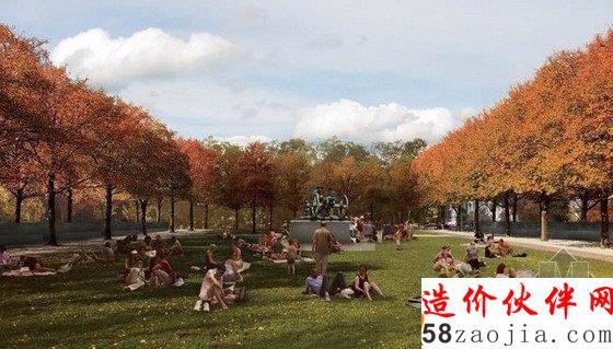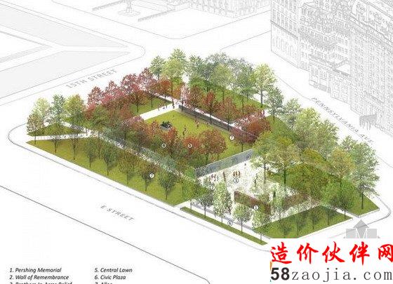 JW:两者都有。我必须说现有的潘兴公园存在着很深远的影响。上周我一直试图向人们传达潘兴公园实际上是一个很好的公园,如果你像我参加这个竞赛一样深入得了解这个公园,你会发现有些原来的设计真的很好,那些东西不应该就此失去。特别是现有的潘兴纪念像。在公园北边的长凳区,有着能看到宾夕法尼亚大道到国会大厦风景的最好视角。所以对我来说这些是非常重要的,不能摆脱这些东西。我知道有所保留会扮演的重要作用,以及人们会怎么看待这个公园。所以,从很早的时候,我尽可能多得保留这些元素,而不是完全推翻。