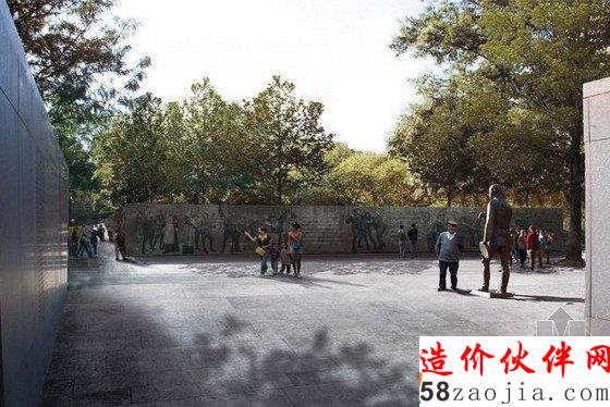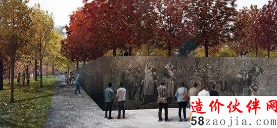 JW:这包括几个方面。我们设计的青铜浮雕墙,结合了战争时期的文本与图像。南北面的墙壁上充斥着战前的语录、战争期间士兵们的日记和笔记以及战争之后的复苏。公园东面墙上的浮雕图像也是如此。它们都记述了美国从一个与世隔绝的国家,通过不断强化,最后屹立于世界之林的转变。但是,这个故事是通过人们的经验和这些人的人文表达来体现的。这在很大程度上印证了纪念一战的主题。