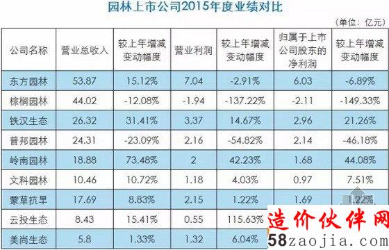 分析:在宏观经济增长持续放缓的大环境下,公司努力开拓生态景观建设市场,继续加大研发力度,在生态修复与重构领域精耕细作,同时不断提升公司工程施工的管理能力。随着公司募集资金的到位和主要工程项目的推进,公司后续经营情况预计将得到改善。总结由于景观工程及设计业务受经济下行压力、房地产市场波动、地方政府债务调控等外部因素的影响,一些园林上市公司的业务规模和业绩同比有所下降。在大环境下的驱使下,各园林上市公司积极谋求转型,有的向生态环保领域拓展,与政府展开PPP模式合作,有的涉足其他产业,如生态金融、文化创意、文化旅游产业等,延伸自己的产业链。此外,应收账款的回收情况很大程度上决定了资产减值损失对利润的影响。受经济周期和宏观经济大环境影响,全行业程度不一地面临工程回款困难、市场需求急剧下降等诸多问题,园林上市公司能否立足根本,做好转型,其中的创造性思维、整合能力和嫁接能力等都缺一不可。