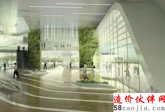 在建筑外观上,建筑立面抽象提取河流波纹的自然形态,结合绿色建筑设计理念,菱形渐变窗户依然取材于宝石的形状,充分体现宝石的概念,让绿宝石的印象散发在建筑的各个层面。创造一个整体形象突出,功能布局合理,方便市民及工作人员使用及交流的地标性建筑场所。