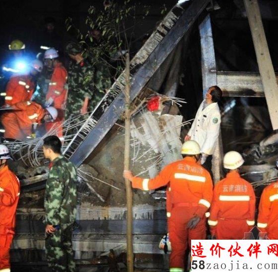 昆明公安消防作战指挥中心接到报警称:位于官渡区普自村一在建工地坍塌,有人员被困。